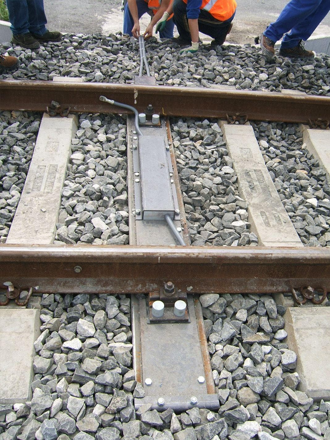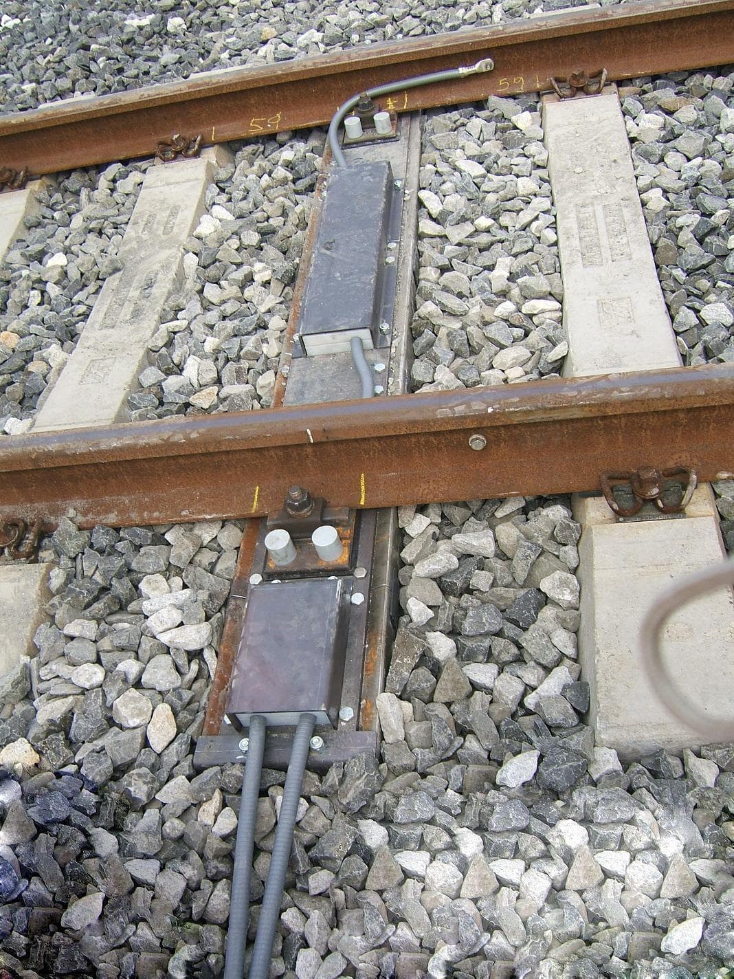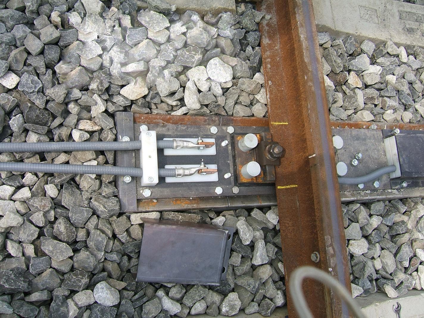 La traversa in acciaio cablata permette di realizzare in modo semplice il collegamento fra la cassa induttiva ed il binario utilizzando conduttori esterni in alluminio/acciaio.