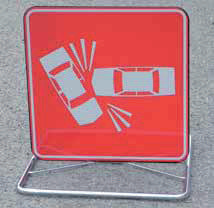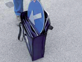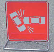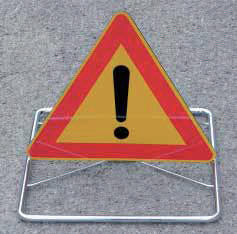 Cavalletto richiudibile Export completo di segnale 60x60 cm., realizzato in VTR con pellicola rifrangente cl.1 o cl.2 prismatic predisposto anche per inserire pannello 20x60 cm., realizzato in VTR con pellicola rifrangente cl.1 o cl.2 prismatica, con due lamoade multiled 100 lampeggianti gialle omologate cl. L2H e certificate "CE".