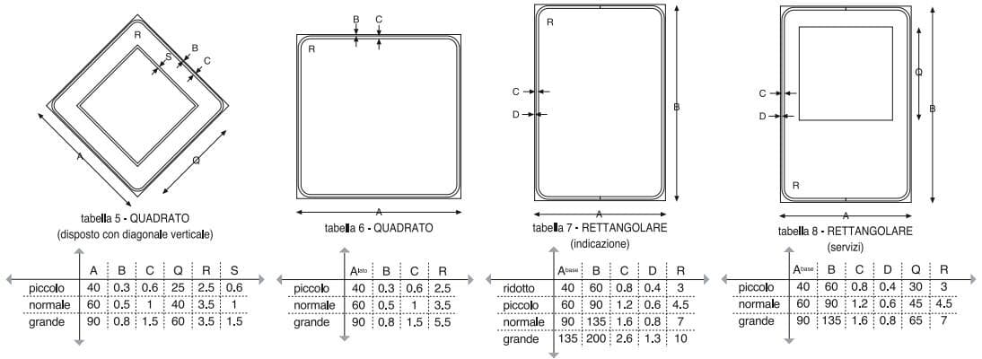 Tipo di misure e formati: piccolo - normale - grande