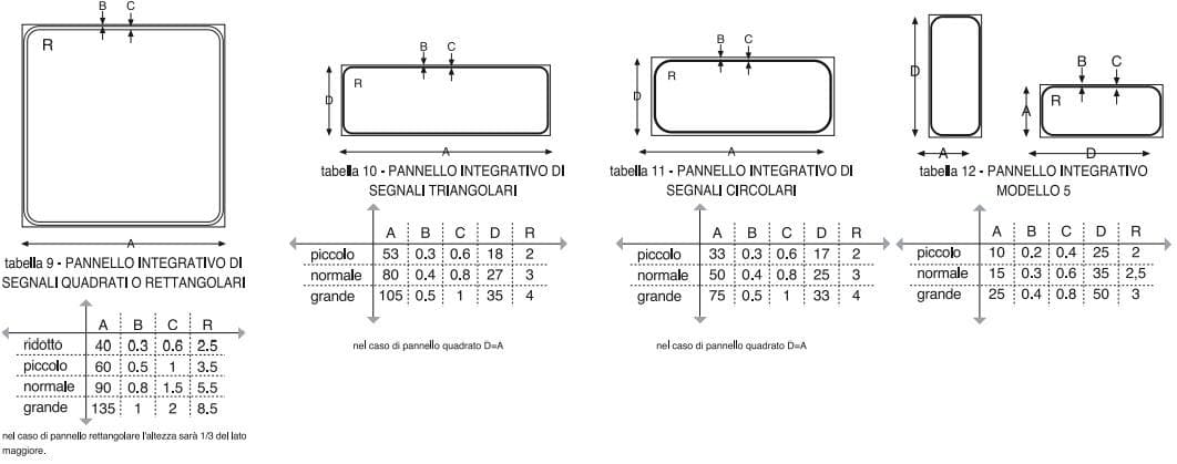 realizzate con pellicola ad alta rifrangenza che indicheranno le